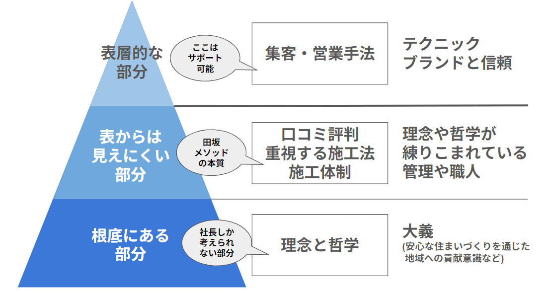 この記事だけでは全てをお伝えできないのですが、住宅塗装事業を本格的に行いたい場合には、どこか一部だけという偏った部分追求ではなく、理念や哲学をベースにした全体観のあるビジネスモデルを築きながら、持続的な会社づくりにつなげていただきたいと思っています。